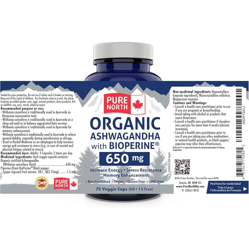 - Third Party Tested and Proudly Canadian - PURE NORTH NATURALS ASHWAGANDHA WITH BIOPERINE is rigorously tested by third parties to ensure purity and potency. Proudly made in Canada, our ashwagandha supplement offers you the highest quality ingredients for optimal wellness.