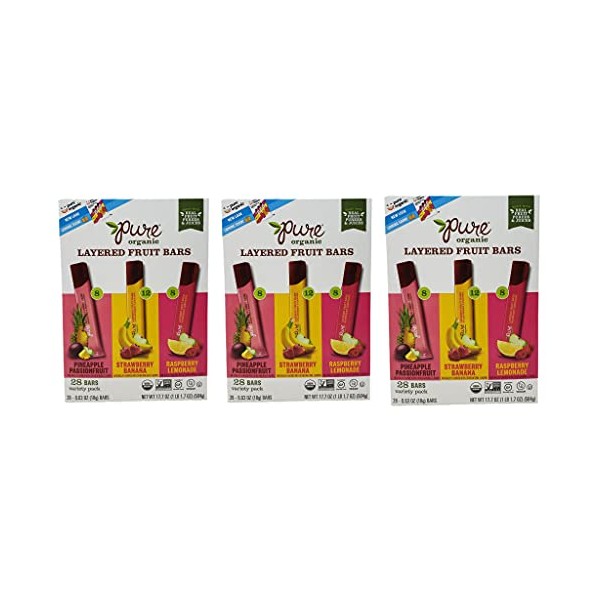 Pure Organic Layered Fruit Bars - Pineapple Passion Fruit, Strawberry Banana ,and Raspberry Lemonade - 84 Bars Total