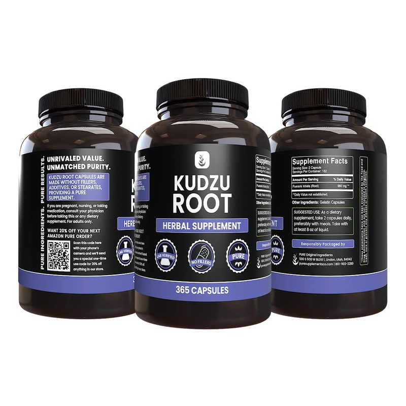- Pure Original Ingredients Kudzu Root Capsules are filled with a single ingredient, providing a pure undiluted supplement