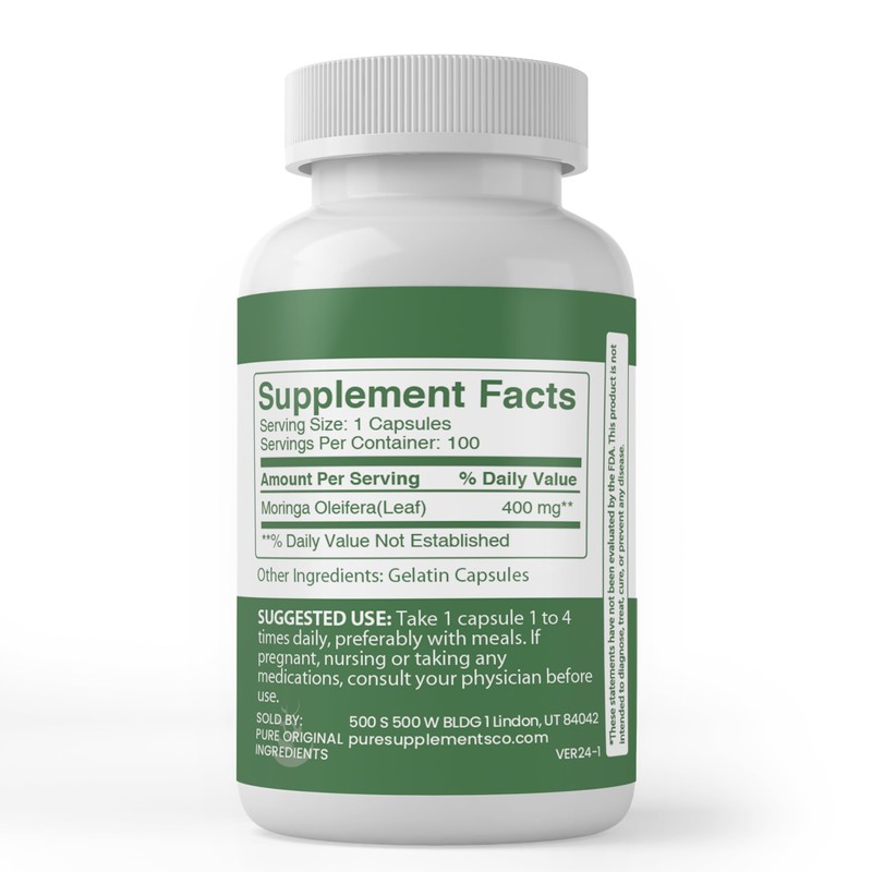 - Pure Original Ingredients Moringa Oleifera Capsules are filled with a single ingredient, providing a pure undiluted supplement