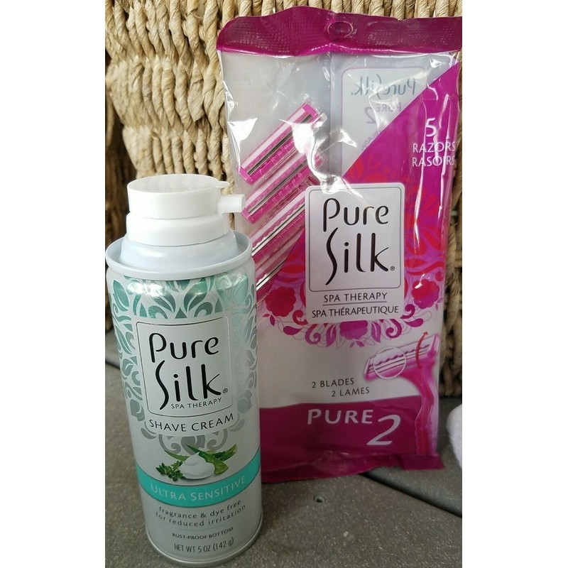 Pure Silk Ultra Sensitive Soothing Shave Cream PLUS Pure Silk 2 blade Razor 5 Pk