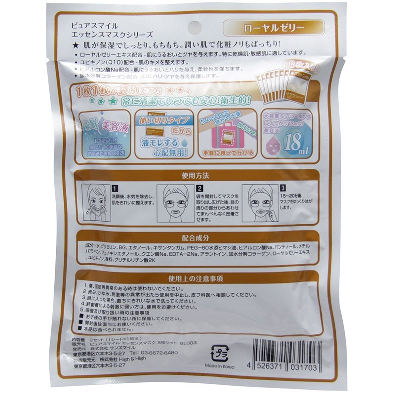 Pure Smile Essence Masks Face Mask, Pack of 8