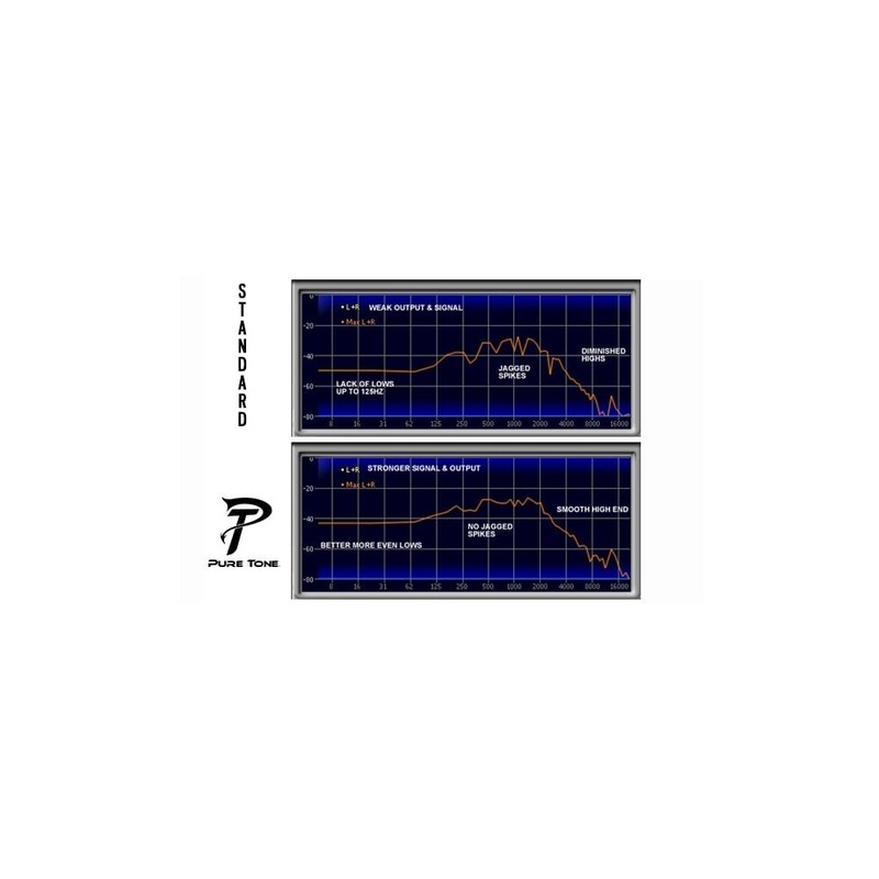 The Pure Tone jack contains dual tension grounds and dual positive tips for optimal signal and lowest possible noise. 100% greater surface area at all contact points creates a more stable connection; as a result, high and low frequencies are greatly improved creating a much more balanced sound while eliminating frequency spikes. No more noise crackle caused by pressure grounds!