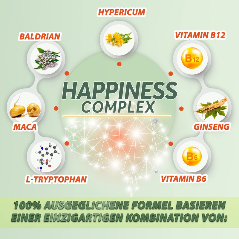 Pure tryptophan with maca, ginseng and vitamins B12 and B6, improves mood, eliminates fatigue, provides energy and vitality, 60 and