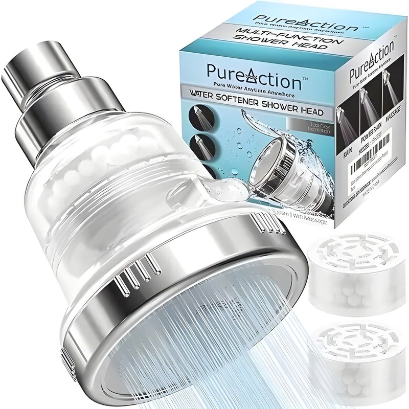PureAction Water Softener Shower Head Filter for Hard Water - Chlorine & Fluoride Filter - Filtered Shower Head - High Pressure Rain Showerhead - 2 Replaceable Filters - Best Shower As Dry Skin & Hair
