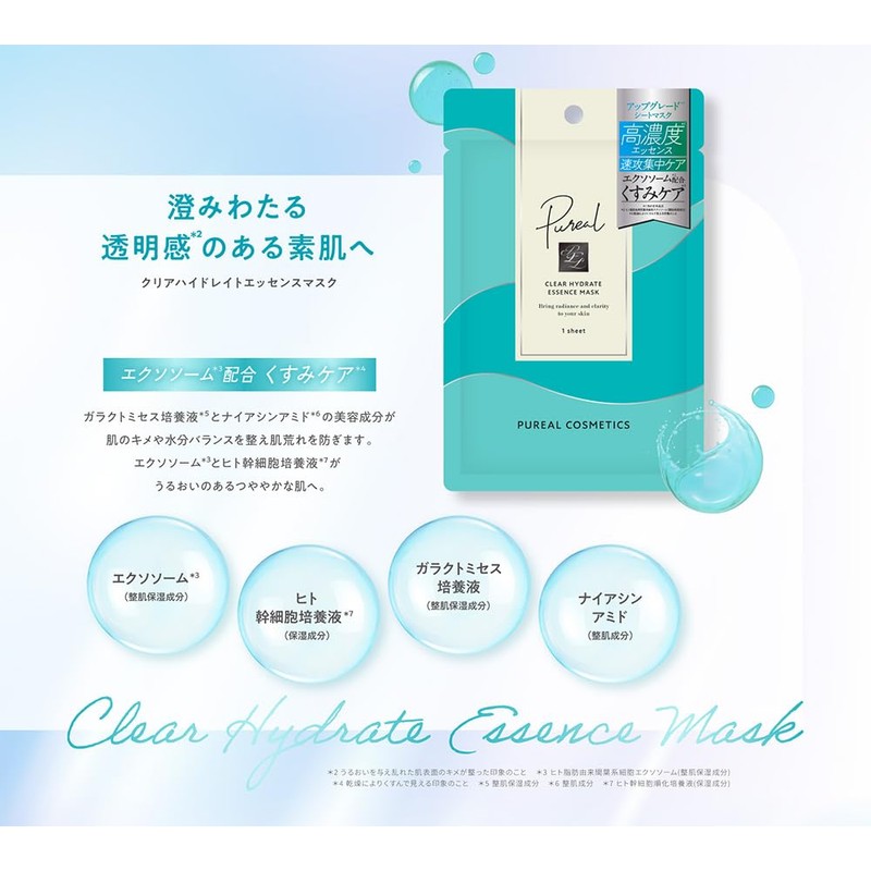 Pureal(ピュレア) パック クリアハイドレイトエッセンスマスク 3枚入 速攻集中ケア フェイスパック シートマスク