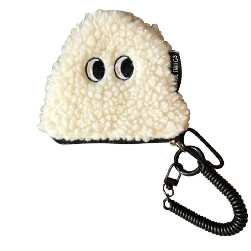 - 【サイズ・仕様】本体:約13×12cm、重さ:約30g、素材:ポリエステル(ボア生地)+カラビナ+コイルストラップ。ファスナー式開閉で中身も安心。