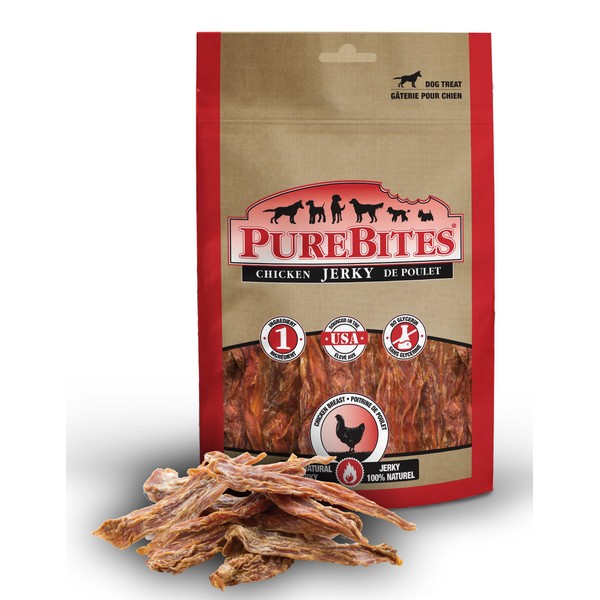 - Go ahead, turn the bag around and look at the ingredients. PureBites Chicken Jerky are made with only 1 ingredient
