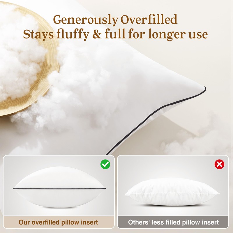 - Overfilled for a Fuller Look: Stuffed with generous amounts of down alternative microfiber, these pillow inserts stay plump and full, giving your throw pillows a rich, luxurious look.