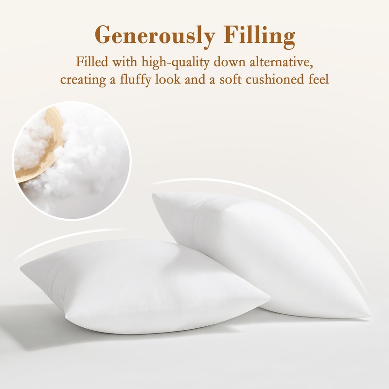 - Plush Down Alternative Fill - Our pillow inserts are generously filled with soft down alternative materials. It maintains the fluffy shape of the pillows while providing the luxury and comfort of near down.