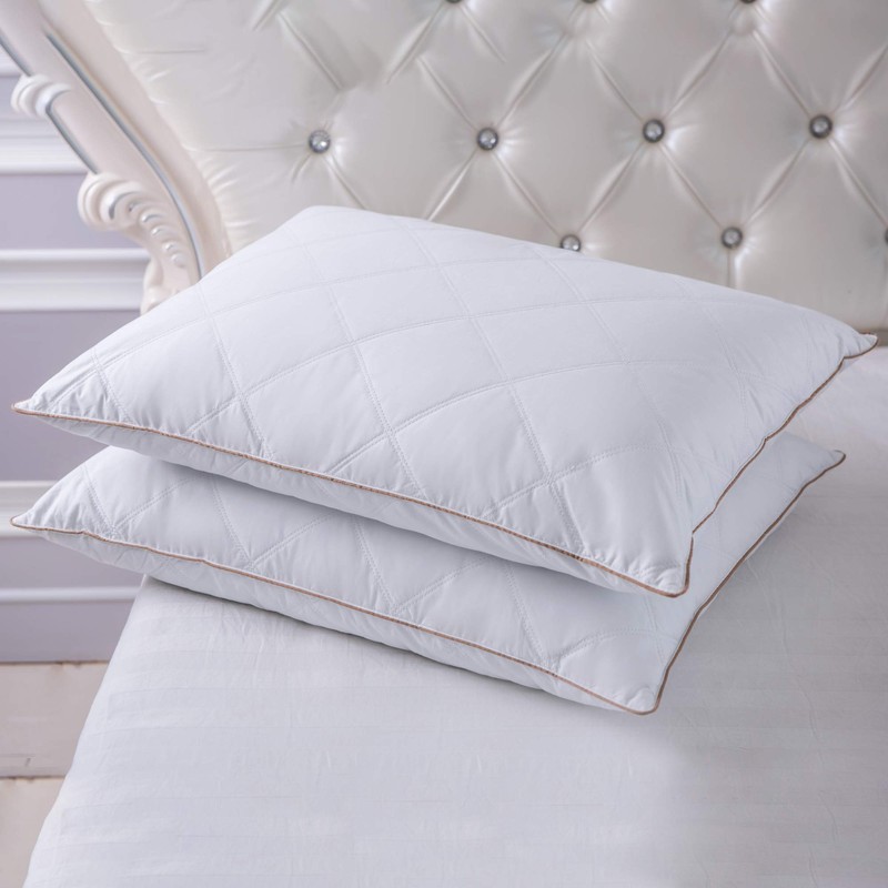 - MEDIUM FIRM DENSITY - This bed pillow is designed with beautiful diamond lattice quilting, brown piping, and great medium firm support. Whether you sleep on your side, back or front, this pillow helps ensure you sleep through the night and wake in the morning without any stiffness.