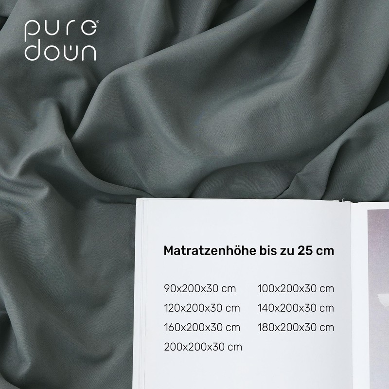 puredown Set of 2 Fitted Sheets 200 x 200 cm Microfibre Bed Sheets for Mattresses up to 25-30 cm, Comfortable Breathable Fitted Sheets Bed Linen, Oeko-Tex, Black Charcoal