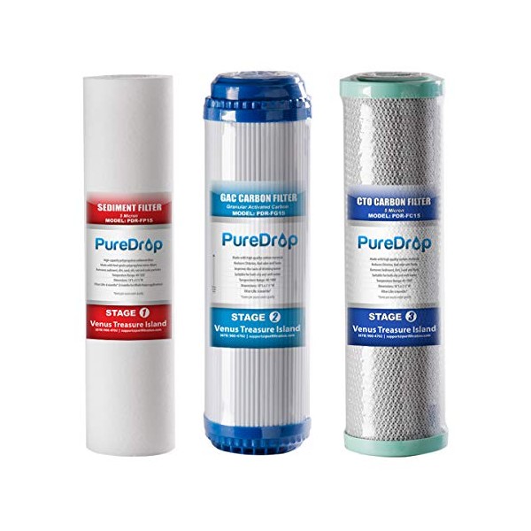 PureDrop 10 In. x 2.5 In. Standard Reverse Osmosis Replacement Pre-Filter Pack (6 Month), White, (PDR-F3)