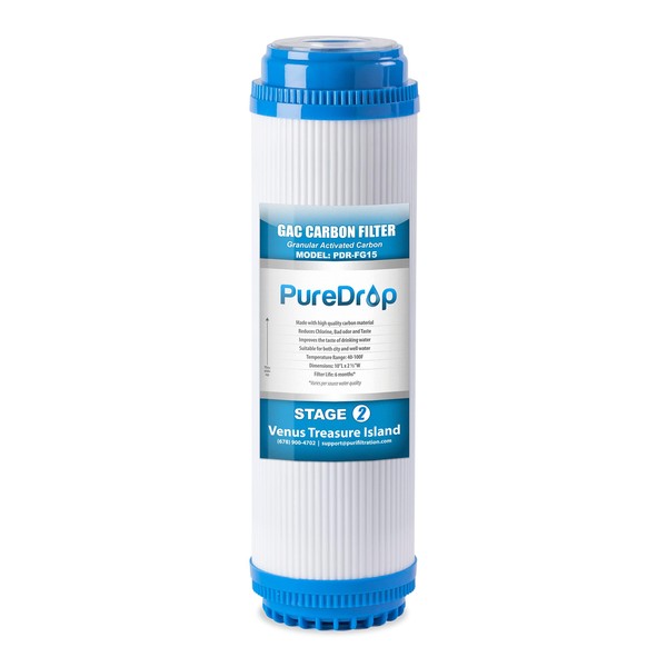 PureDrop PDR-FG15 2.5"x10" GAC Granular Activated Carbon Water Filter Cartridge Replacement for Reverse Osmosis Water Filter System