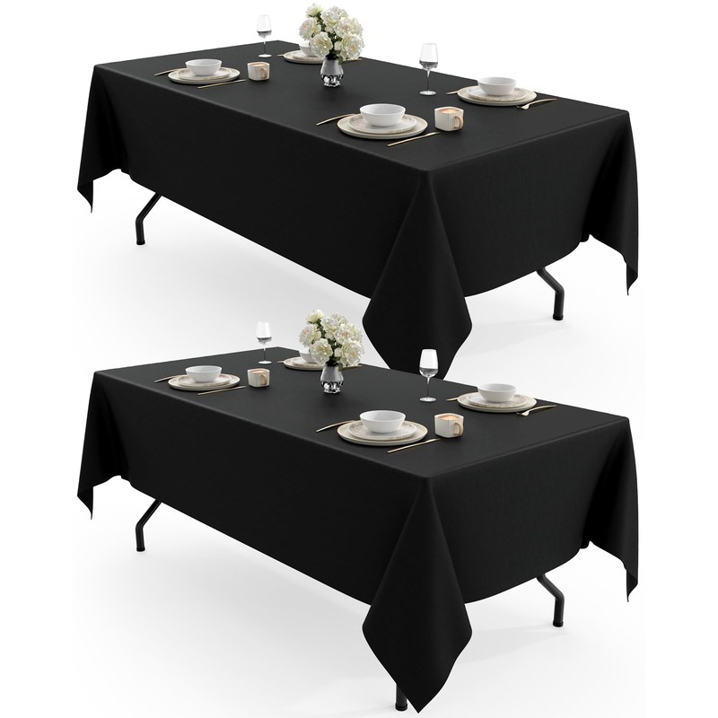 Pureegg Table Cloth - Polyester Table Cloth for Rectangle Table, 150 x 210cm Tablecloth, Decorative Tablecloths for Parties, Dinings, Picnics, Washable & Ironable, Black, 2 Pack