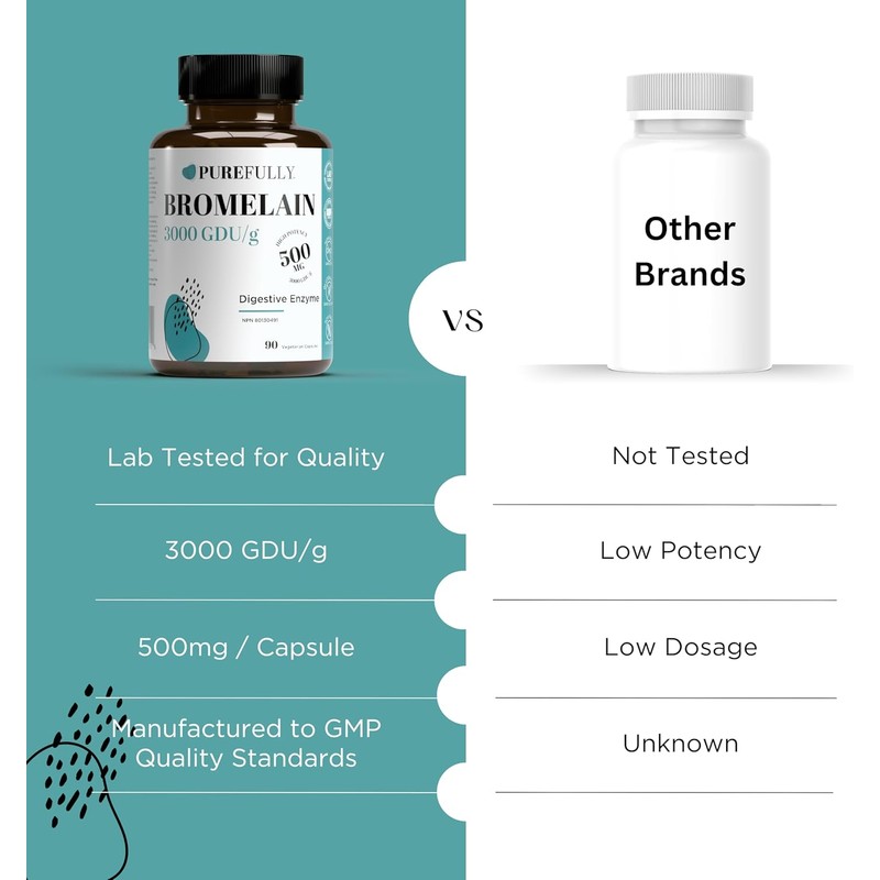 - High Potency 3000 GDU Bromelain: PUREFULLY Bromelain Supplement 3000 GDU/g features a high standardization of enzymatic potency, ensuring exceptional effectiveness in supporting protein breakdown for enhanced digestive health.