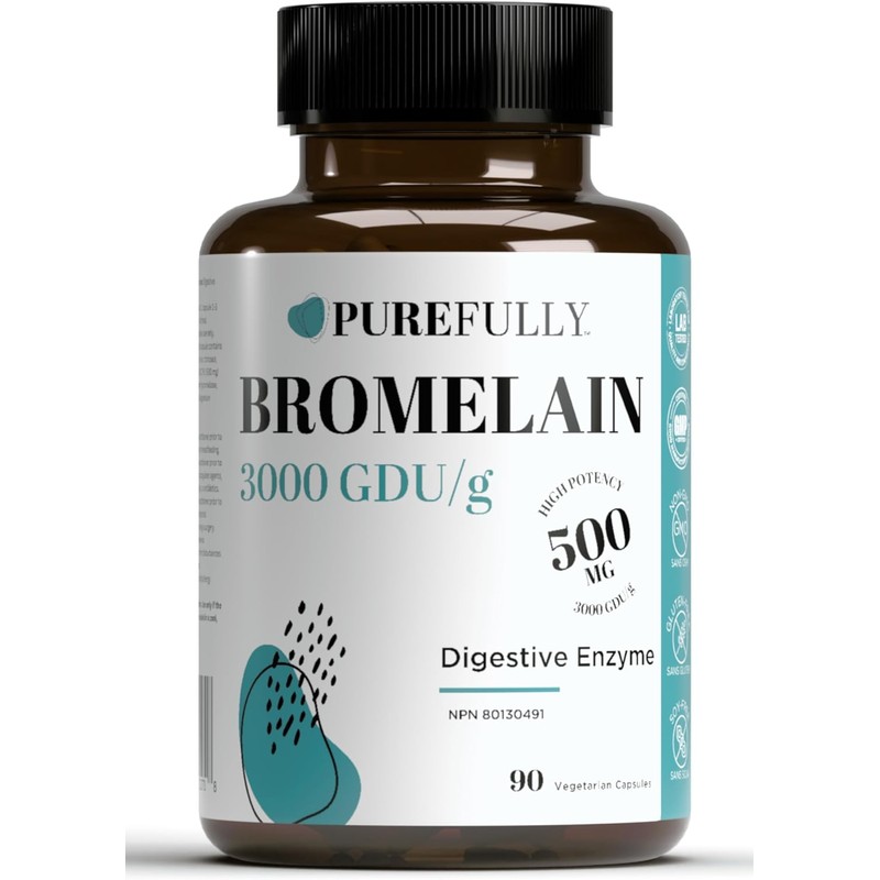 PUREFULLY Bromelain 3000 GDU/g 500mg, 90 capsules for Superior Digestive Support - Natural Pineapple Proteolytic Enzyme Supplement