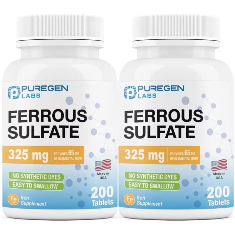 Puregen Ferrous Sulfate 325mg 65mg Elemental Iron High Potency Iron 200Tabs 2Pk