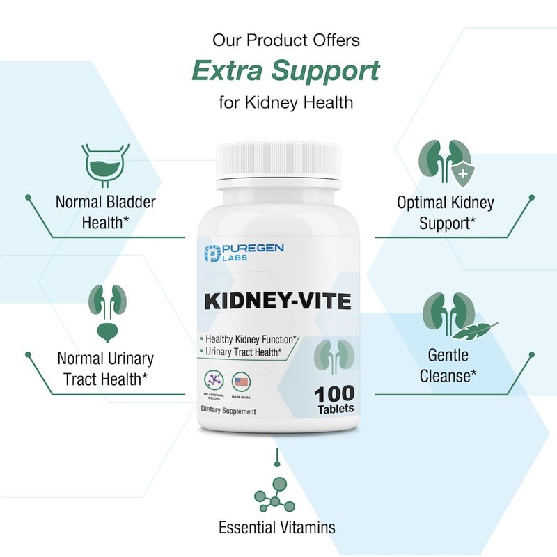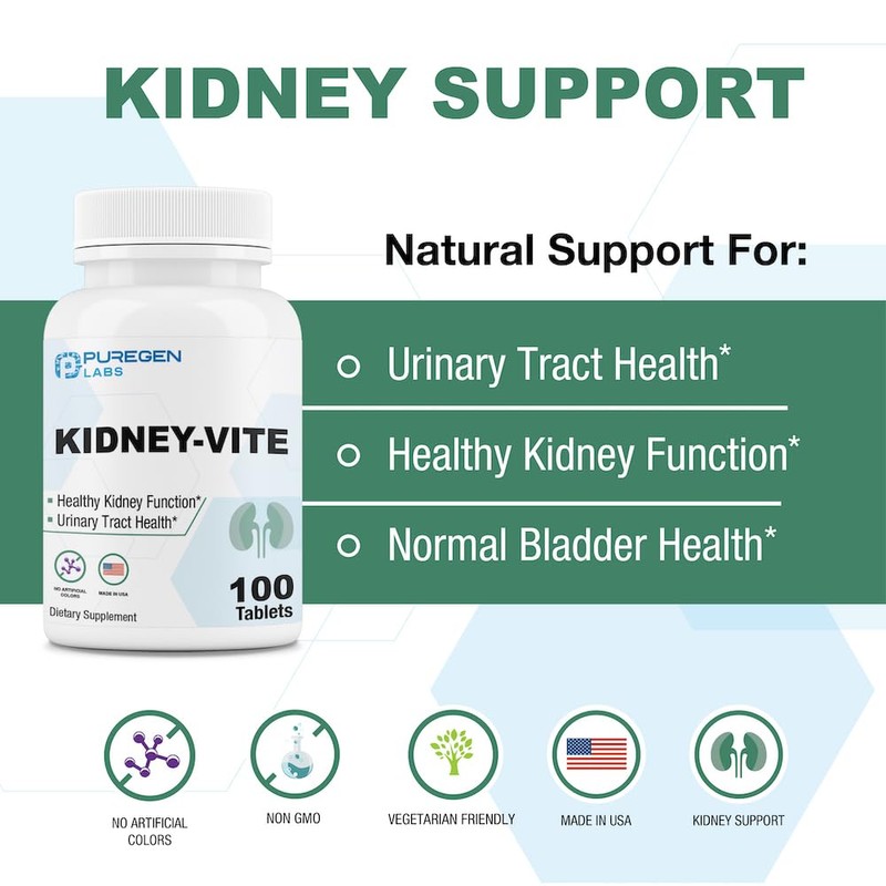 - ✔️ QUALITY YOU CAN TRUST: Our product is made in USA. It Is Vegetarian friendly, free of Gluten, Wheat, Yeast, Milk, Lactose, Artificial Flavor & Sweetener & NON-GMO & No synthetic dyes & No Artificial Colors. Puregen Labs Kidney-Vite is made in a facility following strict GMP guidelines to ensure safety and quality.