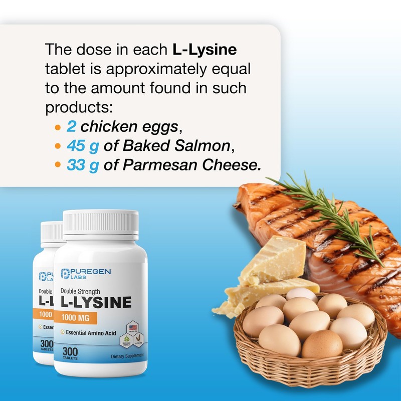 Puregen Labs L-Lysine Extra Strength 1000 MG per Tablet - 300 Servings | High Potency, Immune and Collagen Synthesis Support, Non-GMO, NO Gluten and Dairy - 300 Tablets Made in USA
