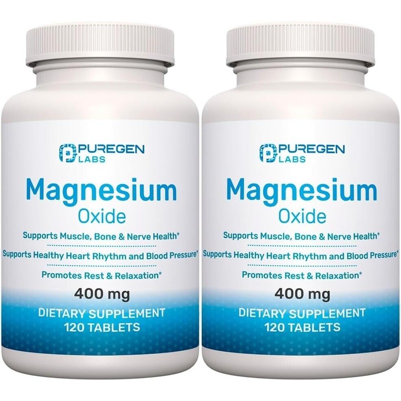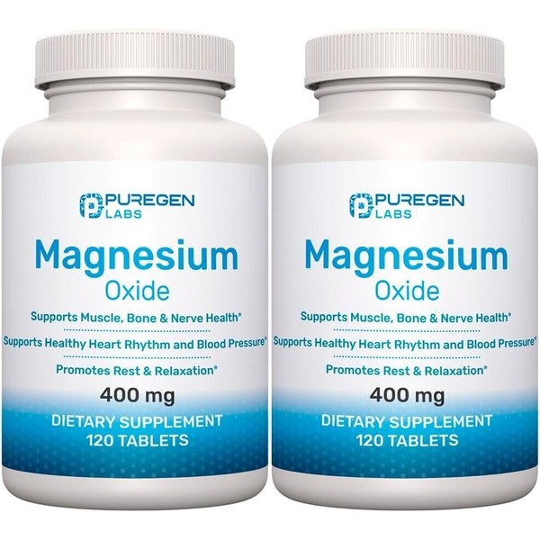 Puregen Magnesium Oxide 400mg High Potency Supplement 120 Tablets 2 Pack