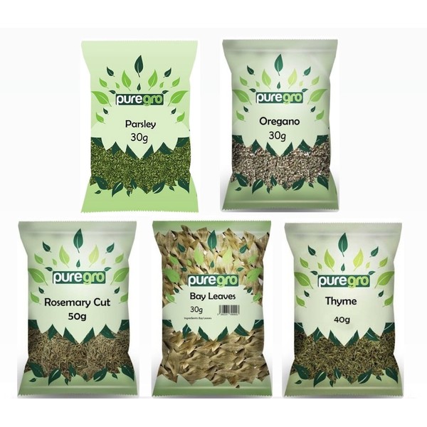 - Parsley 30g. Oregano 30g. Rosemary Cut 50g. Bay Leaves 30g. Thyme 40g.