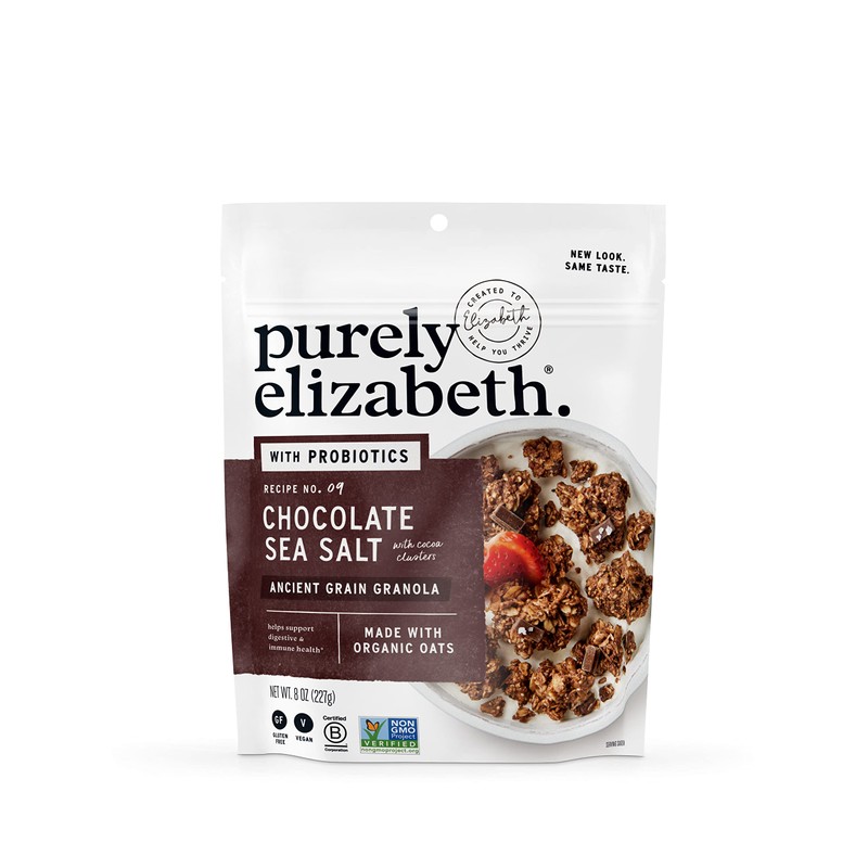 Purely Elizabeth, Chocolate Sea Salt, Ancient Grain Granola with Probiotics, Gluten-Free, Non-GMO (8oz Bag)