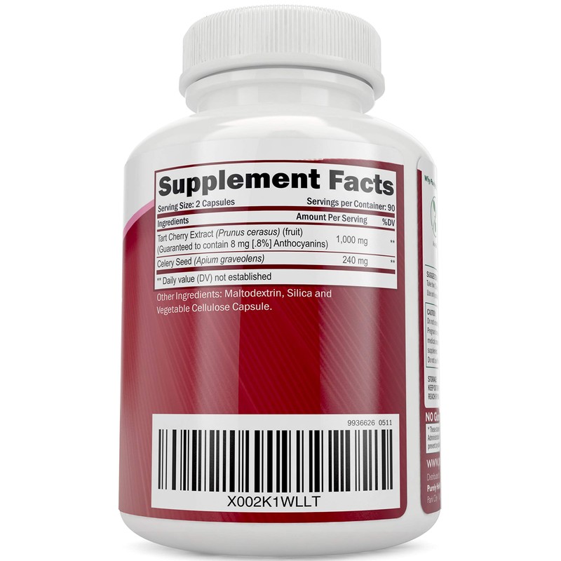 - WHY PAY MORE, OVER 50% EXTRA - Our Tart Cherry Extract capsules are incredible value for money. Each bottle contains 180 capsules for a full 3-month supply at the 2-a-day serving size. Other supplements are offering just 60 to 90 capsules or tablets, so we provide at least 50% MORE! Our formulation delivers a 2-in-1 complex of both Tart Cherry and Celery Seed extracts for a powerful blend.