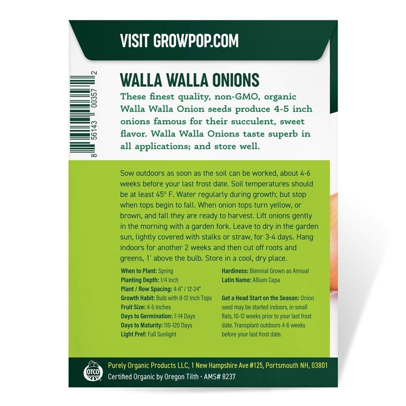 Purely Organic Heirloom Onion Seeds (Walla Walla) - Approx 250 Seeds