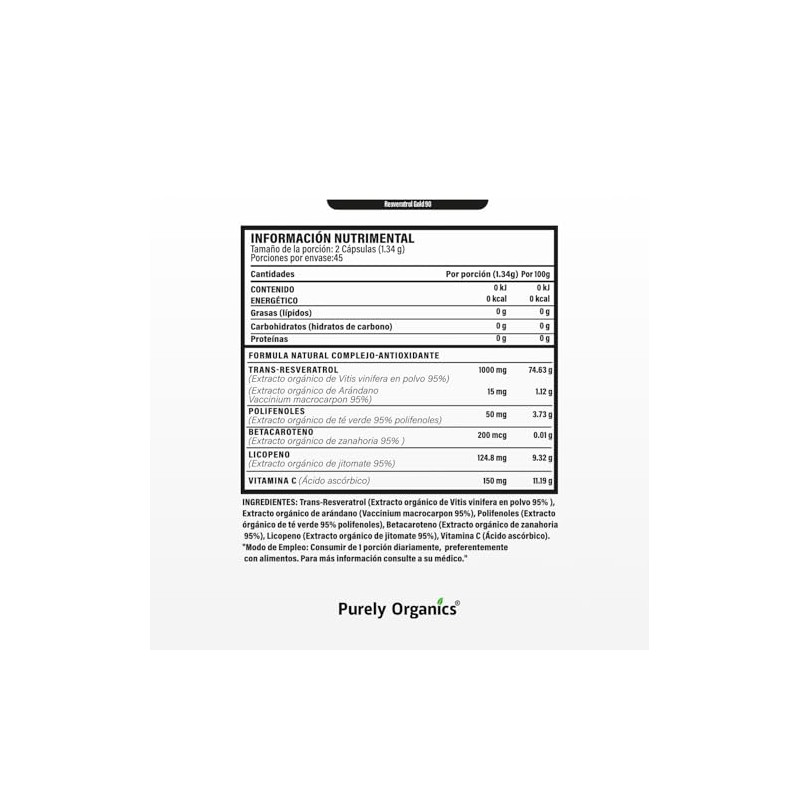 Purely Organics - Purely Organics | Resveratrol Gold 1340 mg | Suplemento Antioxidante con Polifenoles, Licopeno, Betacaroteno y Vitamina C | 200 Cápsulas Veganas. 💯 Autenticidad y máxima durabilidad comprobadas. Materiales de alta gama y acabados premium. 🏆 Recomendado por expertos. Ideal para quienes buscan lo mejor en calidad y estilo. Producto auténtico con satisfacción total asegurada. ¡No te quedes sin el tuyo y aprovecha esta oportunidad única!