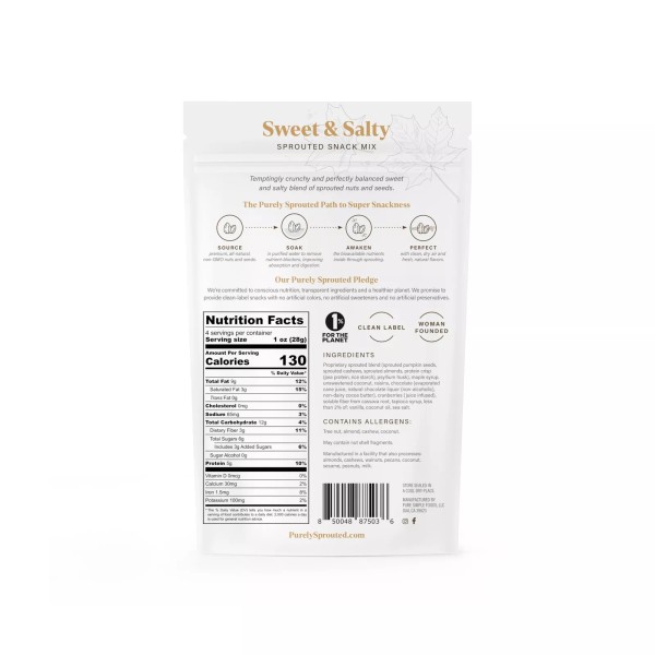 Purely Sprouted Mix Snack Sweet Salty 4oz Pack of 6