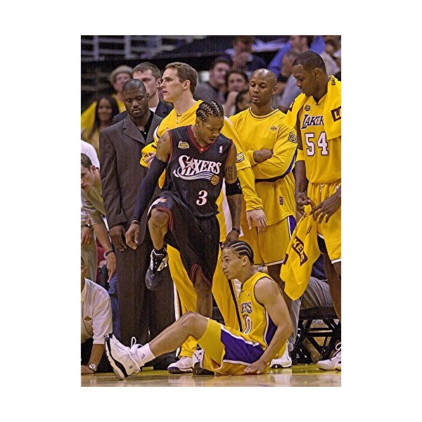 Iverson Stepping Over Tyrron Lue on High Quality Canvas stretched on wood Wall art Decor. High-quality canvas is used. All products/materials are original and made in the US.