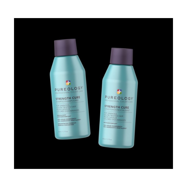 Pureology Strength Cure Shampoo and Conditioner 50ml is a vegan, sulfate-free haircare bundle that strengthens and repairs damaged hair while protecting color vibrancy. This bundle includes a 50ml bottle of Pureology Strength Cure Shampoo and a 50ml bottle of Pureology Strength Cure Conditioner. The shampoo gently cleanses and strengthens damaged hair with a concentrated formula of Asta-Repair™, Keravis, and Ceramide, while the conditioner detangles and softens hair with a blend of Asta-Repair™, Keravis, and AntiFade Complex®. Both products are 100% vegan and sulfate-free, making them safe for color-treated hair. What are the benefits and features of Pureology Strength Cure Shampoo and Conditioner 50ml? Strengthens and repairs damaged hair. Protects color vibrancy with AntiFade Complex®. Gently cleanses hair with a concentrated formula of Asta-Repair™, Keravis, and Ceramide. Detangles and softens hair with a blend of Asta-Repair™, Keravis, and AntiFade Complex®. 100% vegan and sulfate-free. Travel-friendly size. Who is Pureology Strength Cure Shampoo and Conditioner 50ml for? This haircare bundle is perfect for those with damaged hair who want to strengthen and repair their hair while protecting color vibrancy. It is also great for those who are looking for a vegan and sulfate-free haircare option.