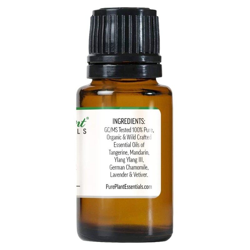 - Aroma: gentle, sweet, floral and citrusy with subtle earthy notes. A custom blend of GC/MS Tested 100% Pure, Organically Grown and Wild Crafted Essential Oils of Tangerine, Mandarin, Ylang Ylang III, German Chamomile, Lavender and Vetiver in 10% Dilution Pure Light Coconut Oil. Contains essential oils with the most sedative and calming action in aromatherapy. Helpful for letting go stress. Promotes relaxation, inner peace, balance and calm.