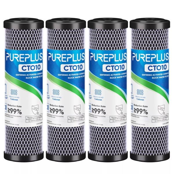 PurePlus 4 pcs 2.5" x 10" Whole House CTO Carbon Water Filter Cartridge Replacement