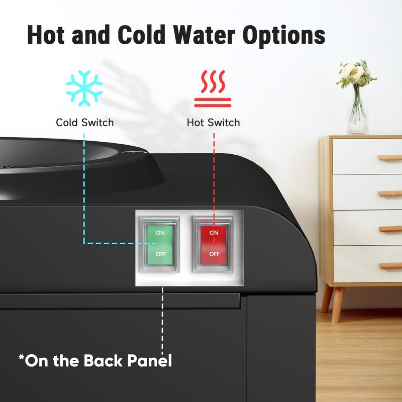 - 【Child Safety Lock】The 5 gallon water dispenser is designed to prevent accidental spills. This feature provides added safety and gives parents peace of mind that young children do not have unsupervised access to hot water.
