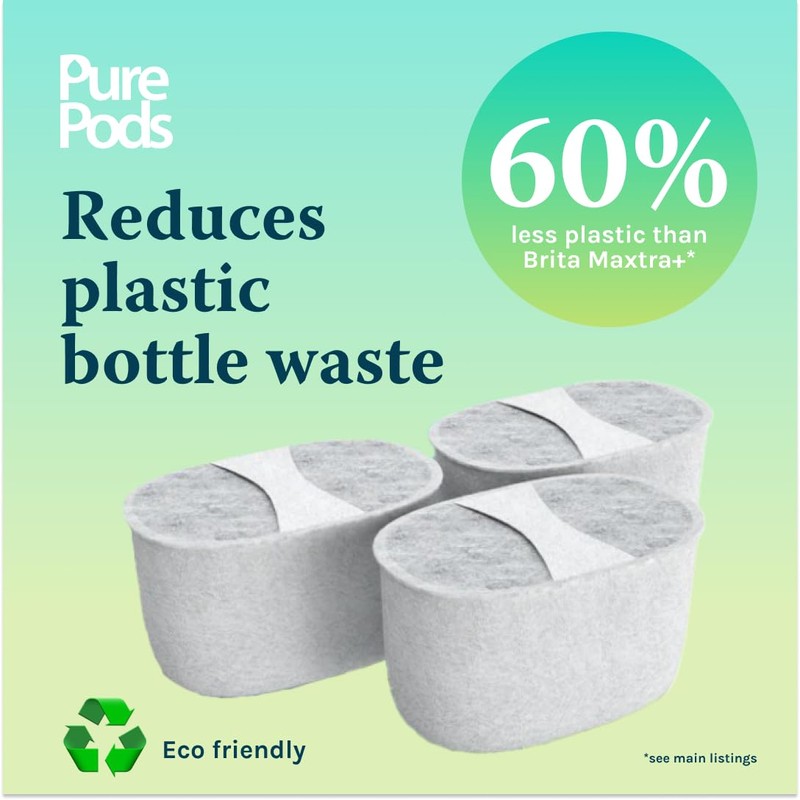 - ECO FRIENDLY- Due to its unique design, each refill pod = 60% less plastic than Brita Maxtra+* Delivering great tasting water whilst saving you money and reducing plastic waste vs bottle water. On top of this, all our packaging is of natural origin and biodegradable