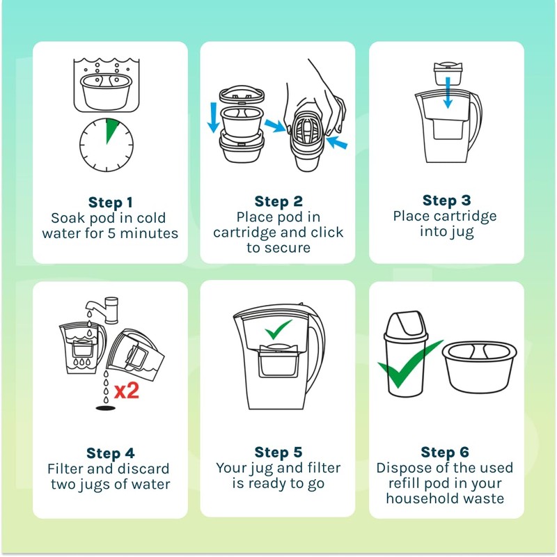 - All you need to do is fit the Refillable Cartridge in the compatible jug and pop your Refill Pod into it.