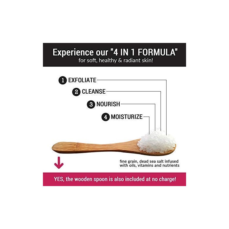- ''' WARNING - BE PREPARED FOR COMPLIMENTS There is always that one person in your group of friends who seems to have the best skin that looks silky, soft and radiant. This person gets non-stop compliments, and everyone wonders how they do it. Now it’s YOUR TURN to be that person.#||# INCLUDES THREE (3) BONUS ACCESSORIES - [..A $10 VALUE!..] - (1) A cute, eco-friendly wooden spoon to help you stir and scoop out the scrub. (2) A round, natural exfoliating loofah pad to help buff away dry dead skin. (3) An exfoliating oatmeal organic bar soap (1oz size) made with ground oats, shea butter and honey. It’s like a full skin softening and exfoliation kit that also makes a great gift!#||# EACH JAR IS HANDCRAFTED & GUARANTEED From sourcing, blending, & packaging we have a hands-on approach. Nothing is mass produced and you won’t find anything artificial in our scrubs. We promise your skin will love our scrubs, if not, return it for a full refund (even if the jar is empty!) but keep the 3 bonus accessories as our gift.#||# READ THIS BEFORE BUYING SCRUBS ONLINE Ask yourself, do you want to buy body scrubs from some big cosmetics company that makes thousands of jars every minute in some factory overseas with artificial ingredients or from our boutique USA company that specializes in making organic, handcrafted body scrubs? Not only that, we believe in value and provide a larger amount (16oz) along with the three bonus items in every package.'''