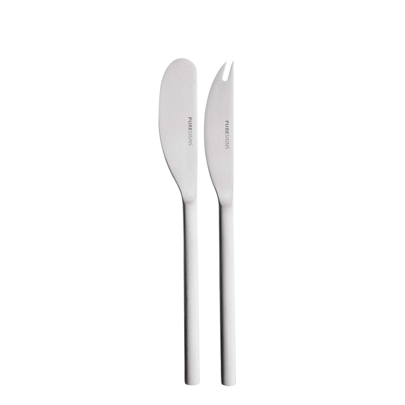 - EXCLUSIVE CHEESE KNIFE SET Discover the Puresigns ONE Extra cheese knife set with 1 spreader and 1 cheese knife, both 210mm long. Made of stainless steel 18/10 in matt silver.