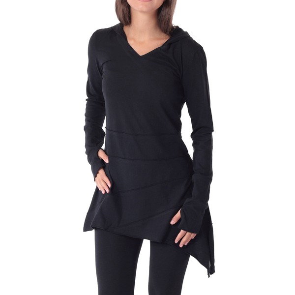 PUREWONDER Long Shirt Tunic Elf Dress Pointed Hood DR60, black