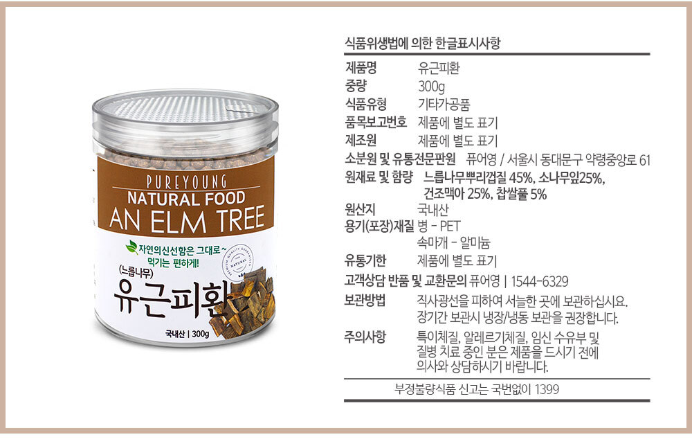 Pureyoung 국산 유근피환 300g Domestic Ulmus davidiana Root Bark Powder 300g