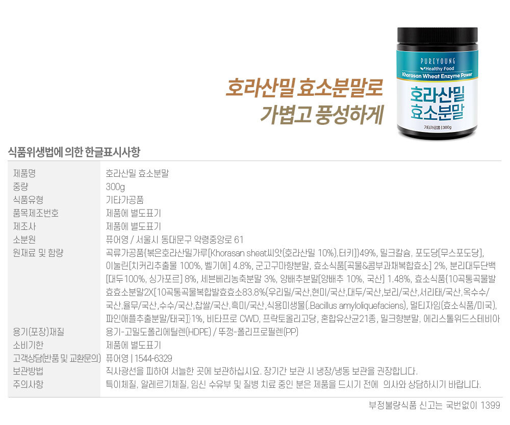 Pureyoung 호라산밀 효소 분말 300g Horsan Wheat Enzyme Powder 300g