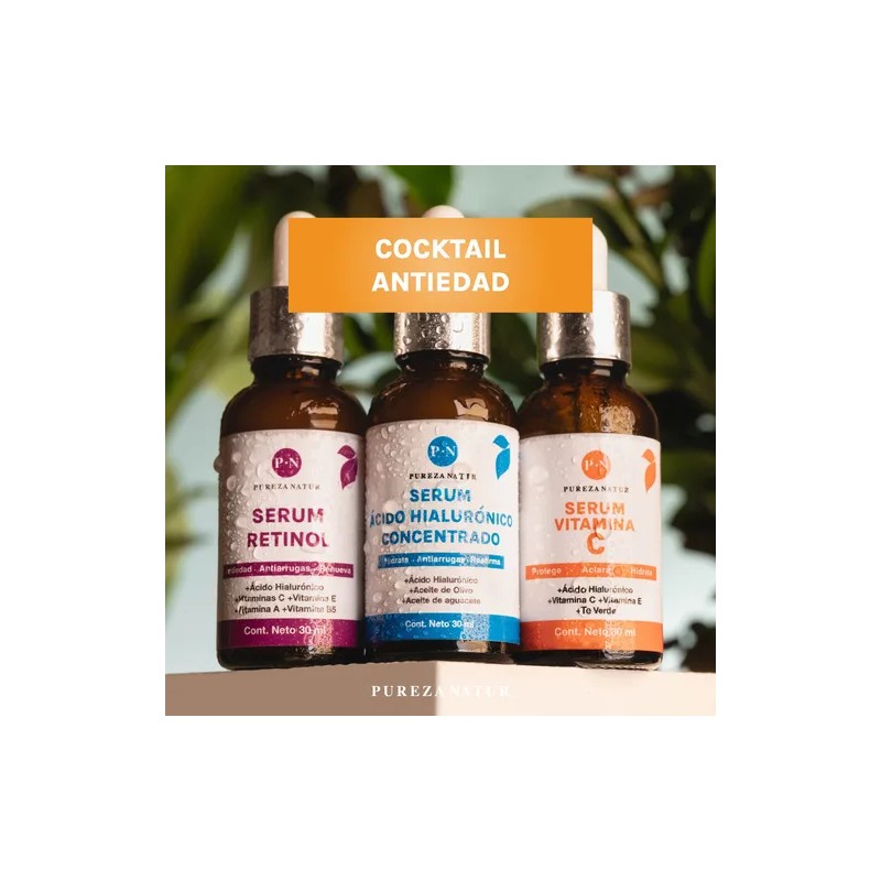 PUREZA NATUR Kit Serum facial Acido Hialurónico, Vitamina C y Retinol anti edad | Paquete completo de serum para el cuidado de la piel, hidratación y rejuvenecimiento con 3 sueros skincare