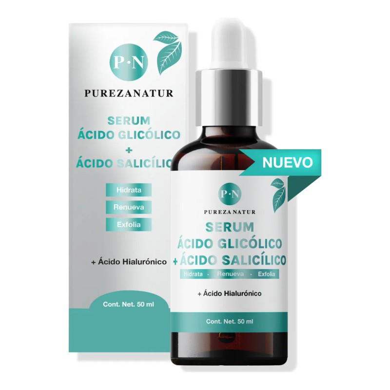Pureza Natur Serum Facial Ácido Glicólico + Salicílico Hidratante | Suero Antiedad Con Aha, Bha, Acido Hialurónico Reductor De Sebo 50ml