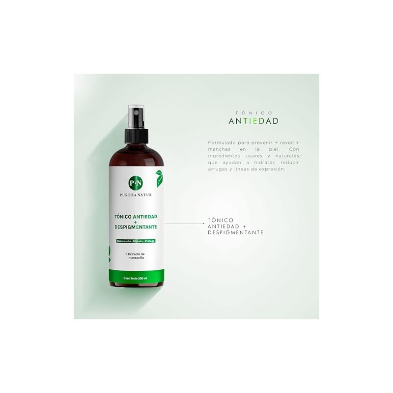 🌟 💄 PUREZANATUR Tónico Antiedad manchas Hidratante facial reductor de pigmentación | Tónico antiedad que rehidrata, protege y rejuvenece tu piel con efecto anti-manchas para rutina skincare 500ml 💄 🌟
