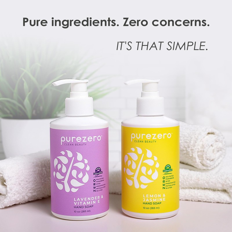 Purezero Lemon & Jasmine Hand Soap Refreshing Citrus Scent, Moisturizing & Sulfate-Free, Vegan Liquid Hand Wash, Formulated Without Parabens, Cruelty-Free, 10 ounces (3 Pack)
