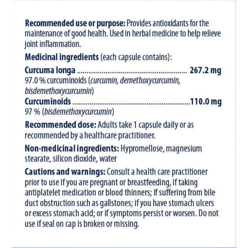 Curcuma longa 97.0 % curcuminoids (curcumin, demethoxycurcumin, bisdemethoxy curcumin) | 267.2 mg |