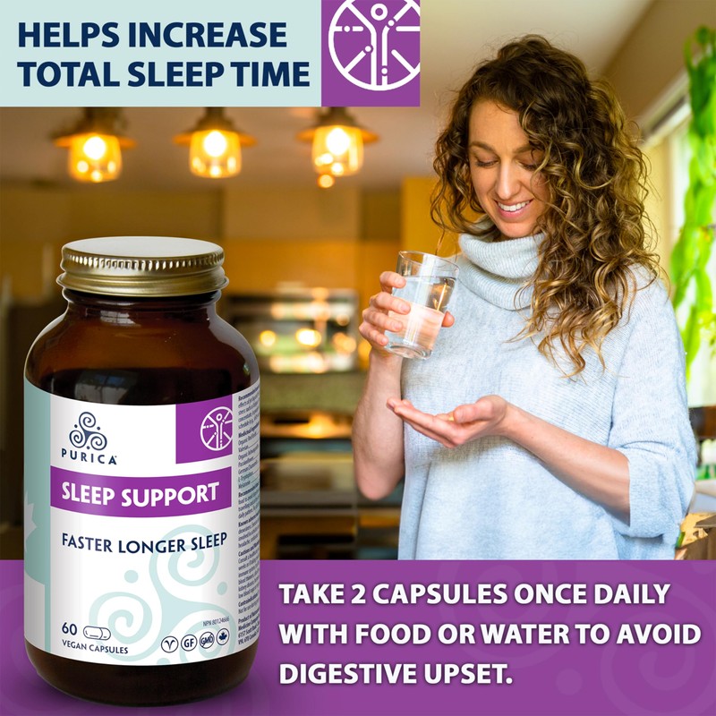 - Ashwagandha Supplement - PURICA Sleep Support Supplement contains Ashwagandha, a natural herb known for its calming effects.