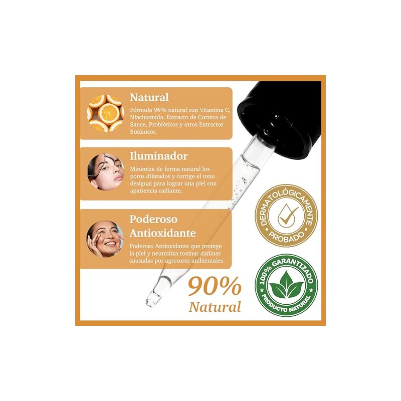 PURIFECT SUERO FACIAL ILUMINADOR VITAMINA C 90 NATURAL 30ML1OZ - Producto Original de Alta Calidad, Entrega Rápida y Segura, Garantía Incluida